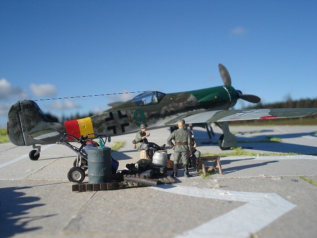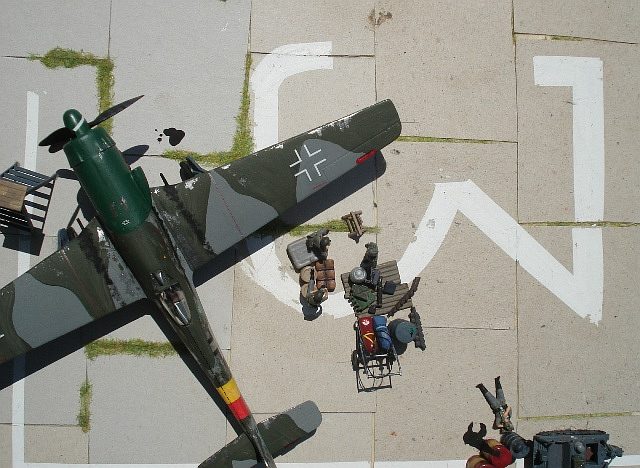 Das Diorama soll eine Szene im bereits fast eingenommenen Deutschland zeigen, bei der einige Wehrmachtsoldaten eine neu an die Luftwaffe ausgelieferte Focke Wulf Ta 152 H-1 bewachen sollten. Die Wehrmachtsoldaten sind von der Front abgezogen worden, um die Luftwaffenstützpunkte zumindest gegen feindlich Infanterie und wenn möglich gegen feindliche Artillerie zu verteidigen. Doch da die Männer vom Fronteinsatz sehr ausgehungert und ermüdet waren, nutzten sie die Chance für ein kleines Schläfchen und eine kleine Mahlzeit.