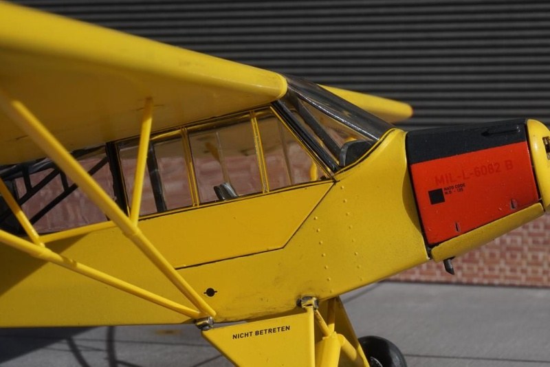 Zum VorbildDie Piper L 18 C Super Cub war unter anderem bei der Bundeswehr zwischen 1956 und 1965 eingesetzt. Sie diente der Pilotenausbildung bzw. der Pilotengrundschulung. Bis 1980 wurden die Piper L-18 noch in Sportfluggruppen weiter verwendet. Danach gingen die Flugzeuge an private Sportflugvereine. Als Vorbild für Lackierung und Kennung von Modellen versuche ich Flugzeuge darzustellen, die ich auch selbst fotografiert habe. Dieses Modell habe ich gemäß Foto aus dem Jahre 1974 mit dem üblichen Gelb und zugehöriger Registrierung versehen. Viele der damaligen Flugzeuge sind heute noch flugfähig. Vielleicht kann mein Modellvorbild noch irgendwo im Flug bewundert werden...
