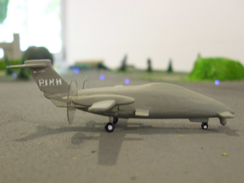 Es handelt sich um eine Piaggio P.1HH Hammerhead in der Baugröße 1:144. Dieses wohl einmalige Modell wurde von mir in monatelanger Kleinarbeit nach Fotounterlagen entworfen und hergestellt. Das Modell hat eine Länge von ca. 10,01 cm. Die Grundform besteht aus einer Polystyrolplatte. Aus dieser Platte wurden der Rumpf sowie die Tragflächen und die Motorgondeln hergestellt. Die Fahrwerke und Aufhängungen für die Außenlasten wurden aus Gratteilen entworfen. Die laufenden Propeller der Hammerhead habe ich aus durchsichtigem Plexiglas hergestellt.