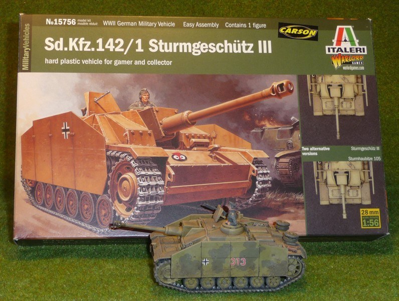 Heute möchte ich von meinem dritten Projekt aus der Wargamer Fraktion berichten. Mein Bericht bezieht sich wieder auf den gebotenen Inhalt und gebaut OOB. Verwendet wurde der Bausatz aus der Italeri-Warlord Games Kooperation. SdKfz 142/1 Stug 3 in 1:56, Kit Nr: 15756. Auch hier erhält man wieder wenige aber dafür gut detaillierte Teile. Mehrere Bemalungsvorschläge und ausreichend viele Decals plus eine Figur. Die Ladeschützenluke kann geöffnet und mit montiertem MG dargestellt werden. Dafür schaut man dann leider ins Leere, da nur eine Figur beiliegt.