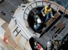 Nach Tipps aus dem Internet musste die Panzerung der Kajüte etwas verschmälert werden. Dies geschah mit einer sehr feinen Feile und dem sparsamen Einsatz von feinem Schmirgelpapier. Erst jetzt wurden das Deck und der Rumpf abgeklebt und mit matter hellgrauer Farbe aus der Spraydose lackiert. Leider musste der Lack wieder ab, da sich der Lack nicht mit dem Kunststoff des Bootes vertrug und viele kleine Blasen entstanden. Nachdem der ganze Lack mühsam abgekratzt war, wurden die zurückgebliebenen Kratzspuren mit sehr feinem Schleifpapier wieder geglättet.