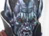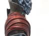 Schon wieder Öl auf Acryl, wobei ich versucht habe sechs verschiedene Farbtöne in den Kopf zu bekommen: Weiß, Lila, Preußisch Blau, Schwarz und Rot. Den roten Umhang habe ich diesmal nicht in den Ofen gestellt und siehe da, er glänzt. Mit drei Schichten Mattlack immer noch. Naja. Selber schuld. Wenn man weiß wie‘s geht sollte man nicht rumexperimentieren. Dank Computer ist ja heutzutage auch schnell ein Baseschild erstellt. Den Sockel habe ich mal nicht selber gebaut, der ist von einer italienischen Firma.