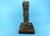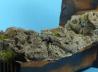 Die Idee zu diesem kleinen Dio bekam ich, als ich nach neuen Gestaltungsmöglichkeiten im Landschaftsbau suchte. Dabei stieß ich auf einen Modellbauer, der eine schnelle und einfache Möglichkeit hat, Felsen zu gestalten. Ich war von der Methode derart angetan, dass ich sie auch ausprobieren musste. Also baute ich zunächst eine Base aus Fichtenholz, flambierte das Holz und ölte es mit Teaköl ein. Danach mischte ich mir Gips an, dabei sollte die Konsistenz nicht zu flüssig sein. Daraufhin trug ich die Masse auf die Base auf und formte erste grobe Strukturen mit dem Spachtel. Sobald die Gipsmasse härter wurde, griff ich zum Cuttermesser, ritzte Spalten und brach Stücke aus der Masse heraus. Dabei bin ich so willkürlich wie nur möglich vorgegangen, um eine möglichst realistische Felswand zu bekommen. Zum Schluss bin ich noch mit einer Messingbürste über die Felswand gegangen.