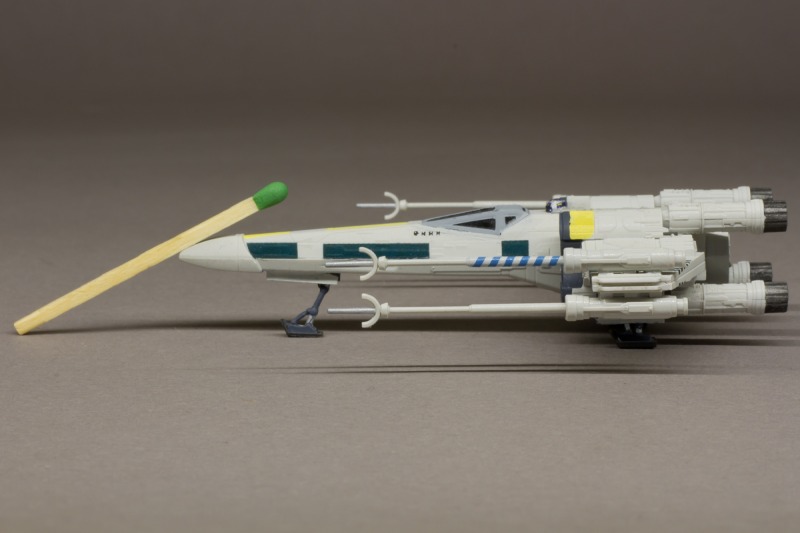 Den Großteil der Details habe ich selber lackiert, die Spirale an den beiden Lasern war eine der Herausforderungen. Ich entschied mich, einen X-Wing der Grün-Staffel zu bauen, natürlich auch wieder im Maßstab 1:144.