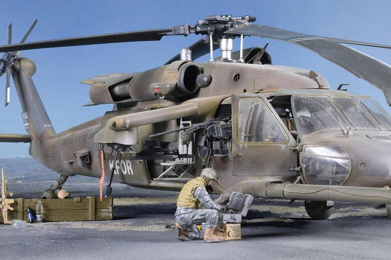Hintergrund war der Wunsch, die berühmten Live Resin - Waffensätze auszuprobieren, für die ich eine geeignete Präsentationsplattform gesucht habe. Man hätte hier einen Oshkosh M-ATV (siehe zum Beispiel den fantastischen Baubericht in Modell Fan August 2012, Seite 52) oder einen Stryker nehmen können. Letztlich fühle ich mich jedoch der Fliegerei zu sehr verbunden und habe mich deshalb als Plattform für einen Blackhawk entschieden.