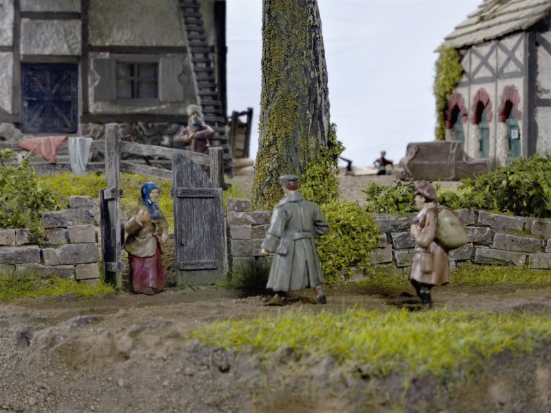 Bei den Figuren, die ich in diesem Diorama verwendet habe, handelt es sich um Resinfiguren von der Firma Munich-Kits mit der Kitnummer FHEW 02 und FHEW 09. Zusätzlich nahm ich noch aus meinem Fundus eine Preiserfigur als Kind. Bemalt habe ich die Figuren mit Vallejo-Farben und bei der Verschmutzung griff ich ebenfalls auf Pigmente von Vallejo zurück.