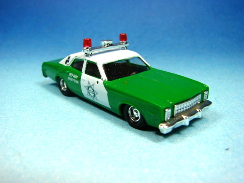 Der Plymouth Fury County Sheriff in Grün-Weiß, ebenfalls von Busch, bleib einfach original aus der Verpackung, da war nichts zu verbessern.