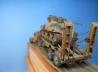 Sie haben zwar zwei verschieden Maßstäbe, aber das fällt kaum auf. An den Scammel und seinen Transporter baute ich noch einige Details, die vom Bausatz fehlten, an. So zum Beispiel ein neuer Luftfilter, Trittbretter Lampen, Spiegel, Scheibenwischer, Anhängekupplungen und Umlenkrollen der Seilwinde. Der Auflieger wurde auch noch einmal komplett überarbeitet. Neue Umlenkrollen für den Flaschenzug, Seile, Unterlegkeile und Verspannungen für die Rampen kamen dazu. Vom Sherman entfernte ich die Kettenschürzen, das MG und die Mündungsbremse. Zu guter Letzt wurde der Sherman noch mit Ketten und Spanner verladen. Am Turm kamen dann noch Anhängeösen dazu.