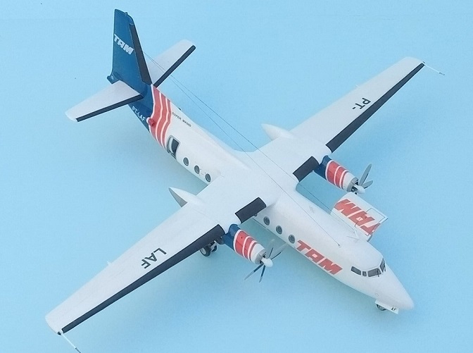 Das Italeri-Modell bietet zwar drei verschiedene Decalversionen, aber schließlich entschied ich mich für eine Maschine der brasilianischen TAM. Den Decalbogen dafür habe ich von einem brasilianischen Modellbauer bezogen. Mein Modell stellt die PT-LAF dar, sie war 1980 die erste F.27, die TAM erworben hatte. Das Original befindet sich derzeit in einem Museum.