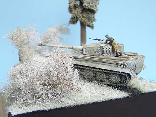 Die Idee zu diesem Winterdiorama im Maßstab 1:72 entstand aus dem Abguss des Felsens im Vordergrund, den ich vor einiger Zeit in meinem Fundus wiederentdeckte. Dazu ein Tiger von Revell und drei schöne Resin-Figuren von Mig Production und schon konnte es losgehen. Der Panzer wurde mit Tamiya-Farben gebrusht. Die Figuren mit Vallejo-Farben bemalt. Die Pflanzen und Gräser kommen aus dem Modelleisenbahn-Sektor, der Baum wurde selbst gefertigt. Das stehende Gewässer entstand aus Giessharz, die "Vereisung" wurde mit Tamiya-Weiß verdünnt mit Wasser ausgeführt. Das Alles auf einer Fläche von 20x15cm! Viel Freude und neue Impulse euch beim Betrachten der Bilder, die wie immer mein Modellbaufreund Bernd Nagel ins rechte Licht rückte. Das nächste Diorama ist schon fertig und wird die Verwendung der neuen Mauerteile der Fa. "Burgdorf&Harste Modell-Manufaktur" demonstrieren. Freut euch darauf!