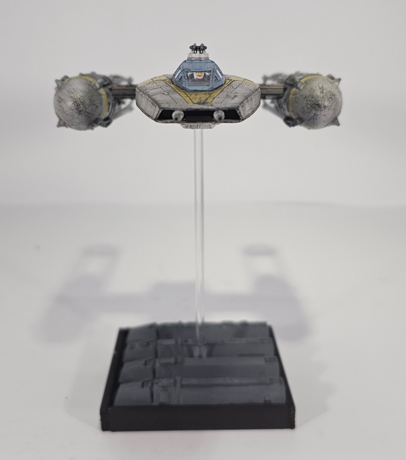 Das Modell des Y-Wing gehört zu den etwas aufwändigeren der Reihe. Das liegt an den vielen Leitungen, die einzeln am Modell angebracht werden müssen. Das erleichtert aber die Lackierung auch ungemein. Das Modell besticht durch eine perfekte Passgenauigkeit und - wie oben beschrieben - durch perfekte Details. Lackiert wurde wieder mit Farben von Tamiya. Anders als die Schiffe des Imperiums sieht man den Schiffen der Rebellen an, dass sie schon einiges hinter sich haben. Viele Lackschäden, Kampfspuren usw. zeugen von dem langen und harten Einsatz im Kampf gegen das Imperium. Das wurde auch so am Modell umgesetzt.
