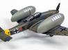 Das Modell......entstand aus dem Fujimi-Bausatz und den tiefgezogenen Personnel Pods von Airmodel. Also, wenn ich nicht unbedingt das Modell in die Ju 87-Reihe aufnehmen wollte, hätte ich es wohl bald entsorgt. Erst musste ich feststellen, dass die beiden Behälter unterschiedlich groß waren als ich sie fertig zusammengebaut hatte. Offensichtlich habe ich bei einem mehr weggeschliffen als bei dem anderen. Also nochmal auseinandergenommen, wieder geschliffen und neu zusammengesetzt, allerdings konnte ich die Klebenaht trotz Einsatz von Spachtelmasse nicht besonders schön hinbekommen. Die böse Uberraschung kam dann aber nach der Demaskierung: auf irgendeinem Weg, in mir nicht bekannter Art und Weise ist Farbe in den Innenraum gekommen, die sich natürlich auf der Innenseite der Fenster niedergeschlagen hat. Aber ich wollte nun nicht noch einmal alles auseinanderreißen. Die Farben stammen wieder von Vallejo (diesmal habe ich die Maschine mit weißem und schwarzen Hintergrund fotografiert, da sieht man sehr gut, wie unterschiedlich die gleichen Farben auf dem Bild wirken). Die Decals stammen aus dem Bausatz von Fujimi und aus der Restekiste.