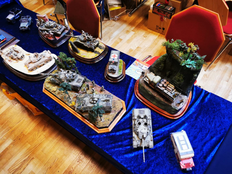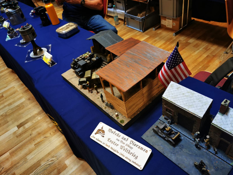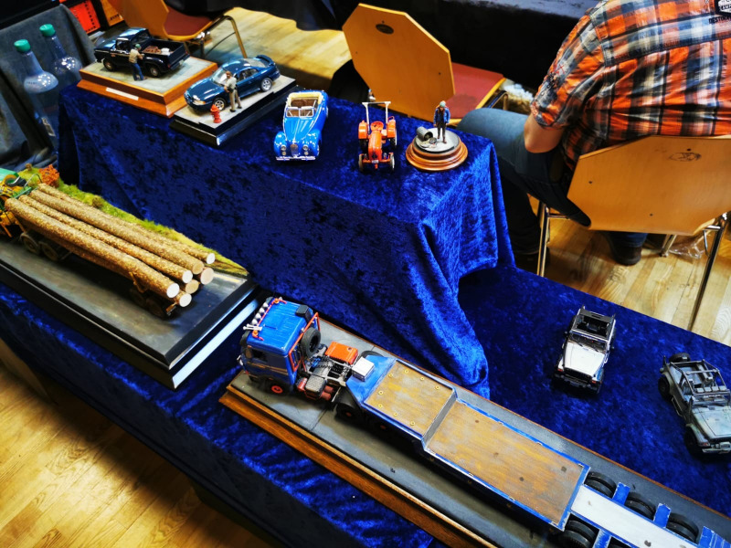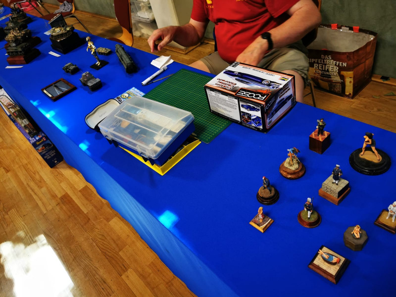 Bei der Ausstellungshalle handelte es sich um einen der beiden Tanzsäle, der bis auf den letzten Platz belegt war. Für besondere Proträtfotos ausgewählter Modelle lud Vereinsvorsitzender Markus dazu ein, diese zwecks besserem Licht in der extra bereitgestellten Fotobox anzufertigen. Und auch für Speisen und Trank war wieder reichlich und gut gesorgt. Die Auswahl an Modellen war toll, Modellkäufe bei Händlern und Sammlern reichlich, Gespräche und Fachsimpeleien tiefgründig, und der schöne Tag verging viel zu schnell.