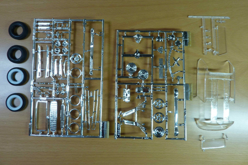 Der Bausatz des Bootes ist schlicht (Formen aus 1960!) gehalten, es ist jedoch ein schöner Motor mit drei Vergasern und hochgezogenen Auspuffrohren zu bauen. Dazu kommen Zündkabel und etwas Verdrahtung. Die Lackierung erfolgte mit Tamiya-Sprühfarbe.