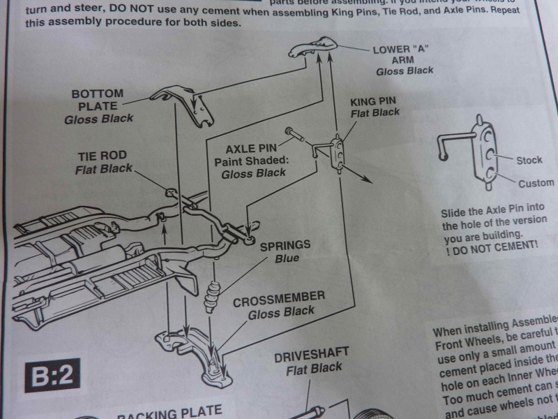 Der AMT Bausatz des Nomad gab sich recht unterschiedlich in der Detaillierung. Motor und Anbauteile waren ok. Die Hinterachse bestand mit den Blattfedern gerade mal aus zwei Teilen und auch der Innenraum bot wenig Details. Die Vorderachse hingegen ist lenkbar ausgeführt und wenn ich nicht selbst mal eine ähnliche Achse mit Schraubenfedern restauriert hätte, der Zusammenbau wäre mir nicht gelungen. Dabei erwies sich die Bauanleitung eher als ein vager Hinweis als eine wertvolle Hilfe. Da zwei verschiedene Felgen beilagen, konnte ich einfach nicht widerstehen, backbords die Cragar-Räder und steuerbords die klassischen Stahlfelgen mit Radkappen zu verwenden. Da jetzt je zwei Felgen übrig waren, konnte ich sie für den Trailer verwenden. Das schafft eine einheitliche Optik. Lackiert habe ich das Dach mit Tamiya Racing White und die Karosse mit Pearl Green. Die Chromteile sind dick und man hat sichtbare Stellen beim Abtrennen. Mit Silberfarbe und Pinsel habe ich ausgebessert und die Zierleisten bemalt (mit Bare Metal Foil kann ich einfach nicht umgehen).