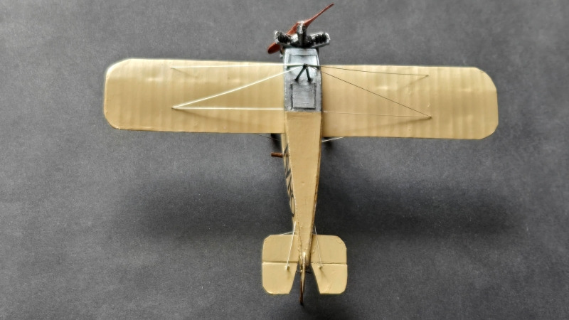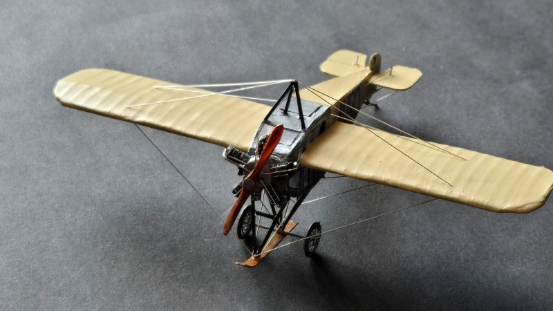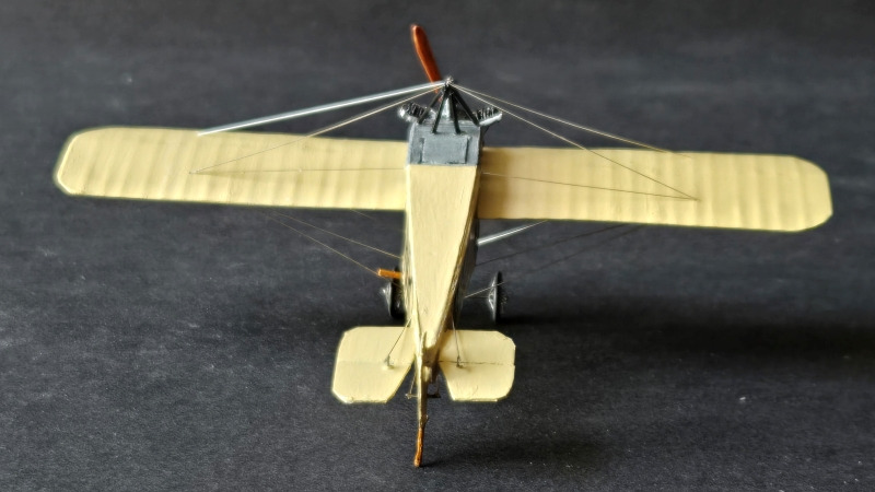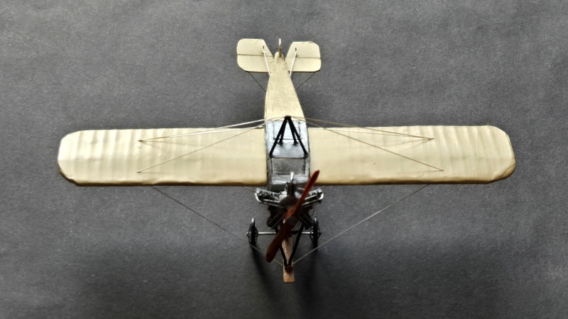 Lackiert habe ich wie immer mit Pinsel und AquaColor-Farben von Revell und für die Holzteile Ölfarbe. Die Verspannung und Steuerdrähte sind aus dünnem Silberdraht, nicht nur außen, sondern auch innerhalb des Rumpfes. Zu Schluss habe ich wieder einen Meilenstein der Flugzeugentwicklung in meine Sammlung aufnehmen können. Nicht perfekt in der Umsetzung, aber das klappt bei mir nie. Ich hoffe aber, dass es nicht nur mir gefällt.