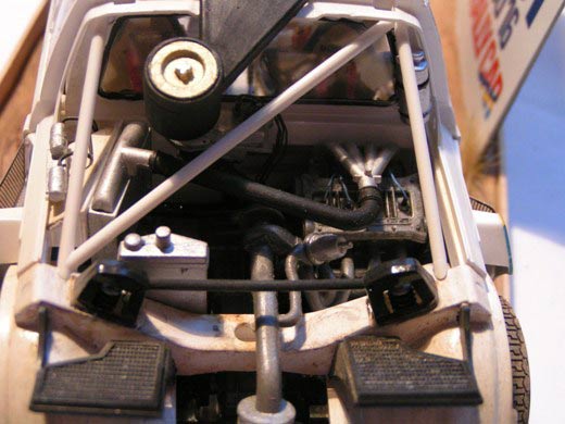 Ich versuche, meine Modelle immer so gut es geht OOB zu bauen und nur die wichtigen Sachen (Kabel, Gurte, Fahrer usw.) zu ergänzen. So auch hier geschehen. Als Extras kamen nur die Zündkabel am Motor und die Fahrerfiguren aus dem FOCUS-Kit zum Einsatz.