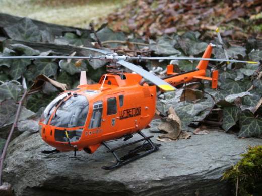 Zum Original:Die Originalmaschine wird von der BGS-Fliegerstaffel für die Luftrettung in Deutschland eingesetzt. Die Maschinen und Piloten werden wie schon gesagt von der Bundespolizei gestellt, ebenso findet dort die Wartung statt. Die erste Serienmaschine hob am 11. April 1970 ab. Dies allerdings noch in der kurzen Version, ohne drittes Seitenfenster. Erst Anfang der 90er wurden die BO-105 Maschinen des BGS um 25 cm verlängert und erhielten somit ihr heutiges Aussehen. Derzeit sind an 11 von 12 Luftrettungsstationen solche BO-105 Maschinen im Einsatz.