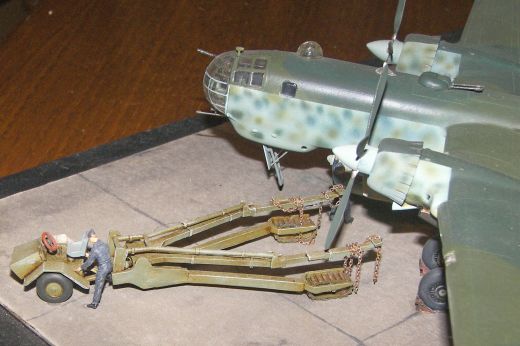 Es handelt sich um einen Uralt-Kit von Airfix, den ich schon seit Ewigkeiten in meinem Bastelkeller habe. Referenz war ein Foto aus einem Fachbuch. Das ganze Modell wurde praktisch völlig neu bearbeitet und korrigiert. Das Fahrwerk, die Cockpiteinrichtung, die Motorgondeln, die Klarsichtteile usw. wurden verbessert bzw. komplett neu erstellt. Das ganze Modell wurde verschliffen und die Panellinien neu eingraviert. Alle Waffenaufbauten bestehen aus diversen Spritzkanülen aus der Apotheke. Die Farben für das Tarnschema kommen von Lifecolor-Italy. Die Decals kommen aus der Bastelkiste, da die von Airfix völlig vergilbt waren. Der Zugwagen stammt aus einem Hellerbausatz. Das Flugzeug war in Bordeaux – Merignac, Frankreich 1944, stationiert. Die Einheit konnte ich nicht herausfinden, eventuell Kampfgeschwader 100? Auf die traurige Geschichte der He 177 möchte ich nicht weiter eingehen, da diese ja altbekannt ist. Bei Fragen oder Kritik könnt ihr mich auch gerne anschreiben: alessandro.biagetti1@tin.it