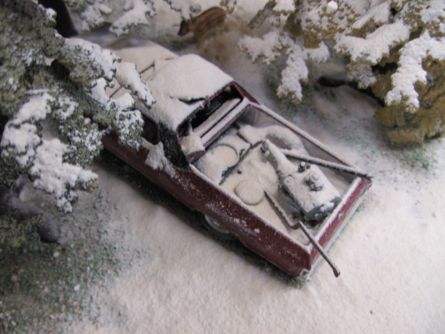 Der Bausatz ist von AMT in 1:24 und ich habe ihn Trashstyle gebaut. Dargestellt ist ein entsorgter fehlgeschlagener Restaurationsversuch, der im Winterwald von einem Frischling entdeckt wird…naja den Rest erklären die Bilder!