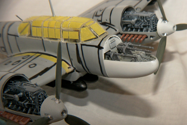 GeschichteÜber die Bf 110 brauche ich nicht ins Detail eingehen. Äußerst erfolgreich während der ersten Kriegsmonate bedingt auch u.a. durch die totale Luftherrschaft der deutschen Luftwaffe. Doch schon bei der Luftschlacht über England stellte sich eine eindeutige Unterlegenheit gegenüber den wendigen Hurricane und Spitfre heraus und sie wurde wegen der hohen Verlustraten nach und nach von diesem Kriegsschauplatz abgezogen. Ein neues Comeback machte die Bf 110 als Nachtjäger (G-Version) in den Jahren 43/44 während der Luftschlacht über Deutschland. Sie wurde mit großem Erfolg gegen die amerikanischen und britischen Bomberverbände eingesetzt und bildete das Rückrat der deutschen Nachtjägerverbände. Bei der hier dargestellten Version handelt es sich um eine Bf 110 C-4 vom 3. Zerstörergeschwader 26 im Juli 1940, welches in Frankreich stationiert war.