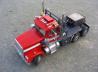 Dieses Modell basiert auf dem 803717 Western Star 5964SS von Italeri. Der Radstand wurde um 5 cm verkürzt und eine Rückwand für das Fahrerhaus aus Polystyrol gefertigt. Der Heckabschluss wurde komplett umgestaltet, da hier eine Rolle und massive Abweiser das Heck des Originals schützen. Auch hier entstanden die Details aus verschiedenem Platten- und -Profilmaterial. Da die kompletten Anbauteile durch die Rahmenverkürzung nicht mehr passten, habe ich diese nicht genutzt und stattdessen Tanks des 359 Peterbilt von Revell verwendet. Diese sind etwas größer und mit Trittstufen versehen. Zusätzlich wurden noch zwei Staukästen an beiden Seiten des Rahmens montiert. Der Fahrerhausschutz besteht aus einem Rahmen aus Plastikprofilen und Verstärkungen aus 1mm Messingdraht, die Winde entstand aus Teilen aus der Restekiste. Das Fahrerhaus bekam noch eine Klimaanlage und Blinklichter spendiert. Alle Chromteile wurden entlackt und dann mit Alcad Chrom lackiert, da die alte Chromschicht durch diverse Umbauten nicht mehr zu gebrauchen war. Die Decals entstanden in Eigenregie am Computer und wurden mit Klarlack versiegelt. Zusätzlich habe ich noch eine Balastbox gebaut, diese wurde auf der Sattelplatte befestigt. Nun ist der Western Star bereit für den ersten Schwertransport. Weitere Bilder