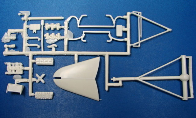 Die Erstauflage des 1936 Ford von Aluminium Metal Toys AMT stammt aus dem Jahr 1961. Ob die vorliegende Wiederauflage tatsächlich aus einer 53 Jahre alten Druckgussform stammt, die in der Zwischenzeit diverse Wiederauflagen hätte produzieren müssen, bleibt offen. Die Bauteile an den Gießästen sind jedenfalls nicht ohne einige kleinere Gussgrate, die sich aber in Grenzen halten und akzeptabel sind. Der Spritzguss ist qualitativ gut in weißem Polystyrol ausgeführt, die Teile sind gerade, schlieren- und verzugsfrei gegossen. In einem weiteren Klarsichtbeutel sind die Reifen verpackt. Die vier Firestone-Reifen haben einseitig einen eingesetzten Weißwandring, sodass man auch die Wahl hat, die Reifen umgedreht zu montieren, ohne die Weißwandringe. Gar nicht gefallen können die beiden Breitreifen für die Hinterachse, die für die Drag-Version verwendet werden sollen. Es sind häßliche zweiteilige Plastikreifen. Round2Models hätte aus dem vielfältigen AMT, Ertl oder MPC Vorrat sicherlich bessere Reifen finden können.