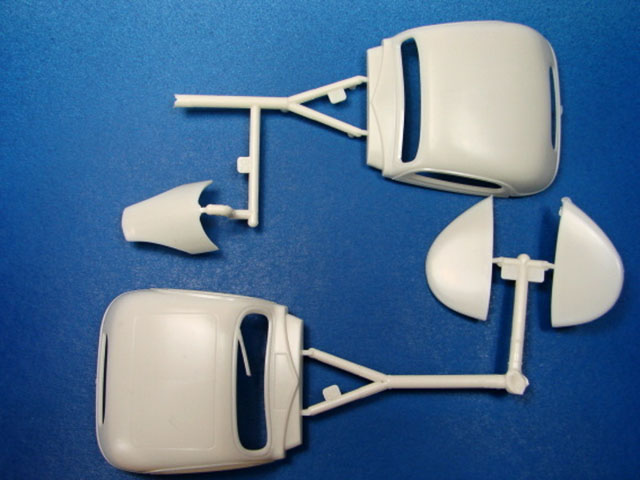 Beim Öffnen des Kartons macht der Inhalt einen aufgeräumten Eindruck. Alle Bauteile befinden sich bestens verpackt in insgesamt zehn Klarsichtbeuteln, was nicht gerade für eine gute Umweltbilanz spricht und für unnötigen Verpackungsmüll sorgt. Für die Scheiben / Klarsichtteile und die Chromteile machen eigene Verpackungsbeutel Sinn, um Kratzer zu vermeiden. Die beiden Gießäste mit den Chromfelgen und den restlichen Chromteilen werden sogar mittels einer zusätzlichen Papierzwischenlage gegenseitig vor Kratzern geschützt. Die normalen Teile inkl. der Karosserie wären in einem einzigen Beutel ebenso gut aufgehoben gewesen.