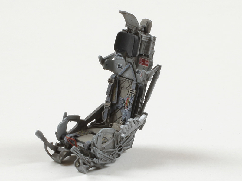 Will man den Sitz in ein Modell einbauen, sind viele der tollen Details des Resinsitzes nicht mehr zu sehen. Denkt man sich die Decals weg, oder beim Bausatz-Sitz hinzu, fällt der Unterschied noch geringer aus. Die Sitzflächen und Rückenlehnen inklusive Gurtzeug sind nahezu identisch.