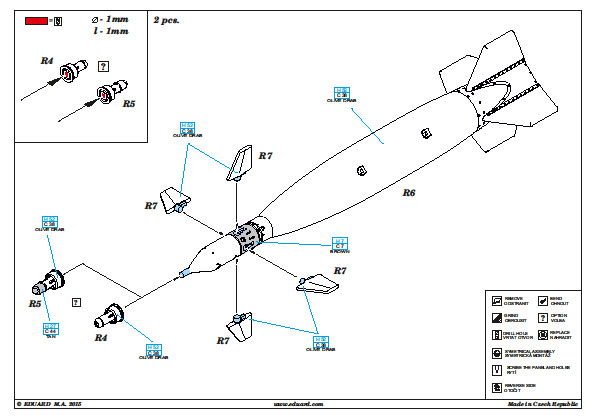 Fazit:Eduard überzeugt mit seinen Resinteilen, die GBU-10 Paveway Bomben schlagen derzeit jedes Spritzgussteil. Weitere Infos:Anmerkungen: Das Set auf der Homepage von Eduard sowie die zugehörige Anleitung erreicht ihr über folgende Links: Diese Besprechung stammt von Norman Gruß - 13. Mai 2015 © 2001-2025 Modellversium Modellbau Magazin | Impressum | Links |