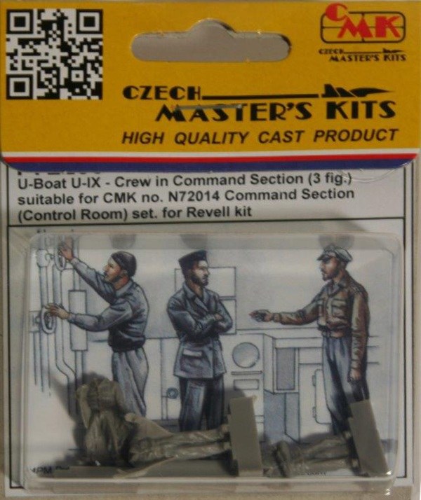 Volle Fahrt voraus! Der Kaleu bestimmt, wohin es geht. Drei Mann besetzen die Brücke des U Bootes. CMK typisch sind die Körper der drei U-Bootfahrer in einem Stück gegossen. Lediglich die Köpfe sitzen auf einem extra Angussriegel. Durch die Uniformen bzw. die dazu passenden Kopfbedeckungen bietet dieses Set weniger Variationsmöglichkeiten, als von anderen CMK Figurensets gewohnt, dennoch können auch diese drei Herren durch sauberen Guss und gelungene Körperhaltungen überzeugen.