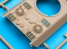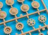 Die Primärwaffe ist einteilig ausgeführt, was uns das lästige Verschleifen der Naht erspart. Am Turm kommen dann auch so langsam die Unterschiede zwischen Ausf.A und D zum tragen, die Ausf. D hatte keine MG Lafette. Weitere Unterschiede zwischen den beiden Versionen finden sich am Heck bei der Auspuffanlage sowie am Bug beim fehlenden MG34 in der Kugelblende (Ausf.D). Die Nietenzähler werden sicherlich noch das Eine oder andere Detail finden, was es zu verbessern gibt. Das Laufwerk des Panthers ist relativ einfach ausgefallen. Sämtliche Aufhängungen der Laufrollen sind bereits an die (separaten) Seitenteile der Unterwanne angegossen, ebenso die Getriebegehäuse der Treibräder. Das bringt zwar Nachteile bei der Detaillierung mit sich, jedoch könnte man - entgegen der Anleitung - die komplette Einheit mitsamt der Ketten vormontieren und erst am Schluss an der Wanne anbringen, nachdem alles fertig bemalt ist. Die Kette ist aus Spritzguss und revelltypisch aus unterschiedlich langen Segmenten aufgebaut, mit Einzelgliedern für die Treib- und Umlenkrollen. Einige Auswerferspuren verzieren die Innenseiten der Kettenglieder.