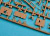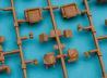 Die vier Soldaten bereiten sich anscheinend gerade auf einen Sturmangriff vor. Er besteht, wie die beiden anderen Trupps, aus drei Mannschaften. Der Anführer ist mit gezogener Pistole unterwegs, der Rest beginnt mit vorgehaltenem Gewehr den Angriff. Außer dem Pistolenholster trägt der Anführer nur noch seinen Säbel als weitere Ausrüstung. Seine Kameraden dürfen neben ihren Rucksäcken auch noch einen Spaten mit sich herumschleppen. Alle vier Soldaten tragen lediglich ihre Feldmützen. Der Rahmen mit dem Zubehör liegt hier einfach bei, eigentlich hätten es m.E. zwei sein müssen. Der Artikel auf der ICM Seite zeigt ebenfalls zwei, deshalb gehe ich hier von einem Packfehler aus. Nichtsdestotrotz bleiben jede Menge Teile für andere Zwecke übrig, darunter: