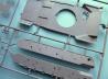 Beachte die massiven Haltegriffe der Tank- und Luftfilterdeckel. Sie sollten durch Draht ersetzt werden. Der Kit beinhaltet alle Teile, die für den Bau eines niederländischen frühen Leos notwendig sind: unterschiedliche Auspufföffnungen, Nebelwurfsystem, MG-Halterung mit Suchscheinwerfer und Antennenhalterungen, und als auffälligstes Merkmal die typischen, an der Wannenseite angebrachten Werkzeugkästen. Außerdem sind am Spritzling J noch ein Querwind- und ein Luftdrucksensor enthalten, auf die in der Anleitung nicht hingewiesen wird, vielleicht ein Fingerzeig auf Folgeversionen. Außerdem ist neben der deutschen und niederländischen auch noch eine belgische Variante baubar, die mit den Teilen des vierten Bauloses und denjenigen der niederländischen Variante erstellt werden soll. Was nicht in der Anleitung angegeben ist: auch die belgischen Leos hatten (ab 1974) die für die niederländische Variante vorgesehenen Werkzeugkästen. Somit kann man auch hier je nach Vorbild und Epoche beim Bau variieren. Entsprechend der vorgesehenen Versionen liegt ein umfangreicher Decalbogen bei, mit dem man sich bei den deutschen Varianten auch ein "Wunschkennzeichen" mit Einzellettern zusammenstellen kann. Feine Sache! Leider sind bei den deutschen Fahrzeugkennzeichen die Nationalitätsfarben versetzt gedruckt, was man aber mit ein wenig weißer Farbe und einem dünnen Pinselchen locker ausbessern kann. Abschließend sei noch auf einen markanten Fehler in der Bauanleitung hingewiesen: in Baustufe 26 auf Seite 12 (Heckaufbau) wird darauf hingewiesen, dass die rechteckige Fernsprechanlage (Teil B51) zur Darstellung des zweiten Bauloses, und die runde Box (Teil B 52) für das vierte Baulos vorgesehen seien. Falsch! Nur das erste Baulos hatte den eckigen Kasten. Also: für die vorgesehenen Versionen des Bausatzes ist stets die runde Variante (B52) zu montieren.