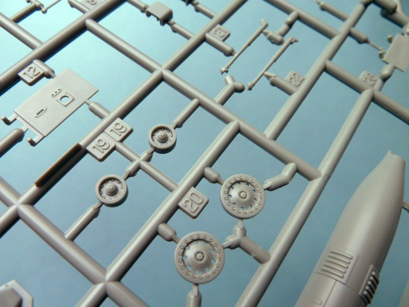 Die Resinteile werden in einem gepolsterten Karton separat aufbewahrt. Eduard ergänzt die Kunsstoffteile mit Rädern, Triebwerks-Nozzles und Schleudersitzen aus der Brassin-Reihe, Fotoätzteilen, zwei opulenten DIN-A-4 großen Decalbögen und Abklebemasken für die Räder. Die Resin- und Ätzteile finden ihren Platz an sinnvollen Stellen des Bausatzes und können ihn dort deutlich aufwerten. Wer nämlich die Bausatzräder mit den Brassinteilen vergleicht, die Cockpitkonsolen mit den farbigen Ätzteilen, die Spritzguss-Triebwerksdüsen mit den Counterparts aus Resin, der wird feststellen, dass die Eduard-Beigaben hier deutlich schärfere Konturen und Details zeigen. Ganz zu schweigen von den kleinen Ätzteilverfeinerungen für's Cockpit, wie Rückspiegel, Head-Up-Display und andere feine Einzelteile, die das Salz in der Modellbau-Suppe ausmachen. Leider sind hier, wie so oft bei Eduards Brassin-Produkten, die Reifen nicht abgeflacht/ im belasteten Zustand dargestellt. Hier sollten die Standflächen entsprechend angeschliffen werden, um einen einigermaßen adäquaten Effekt zu erreichen. Markierungsvarianten und Decals: