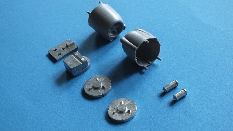 • 10 Plastikspritzlinge aus hellgrauem Material