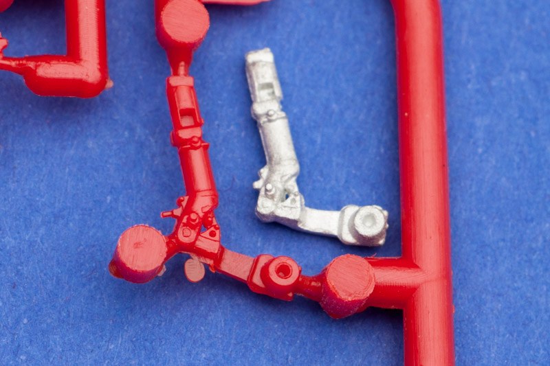 Auf der Homepage von SAC wird das Set passend für den Airfix Bausatz beworben, auf der Verpackung steht aber Revell. Im Vergleich mit den Bausatzteilen dürfte letzteres korrekt sein. Das Set besteht aus fünf Metallteilen von der üblichen, leider nicht immer optimalen Gussqualität. Bis auf das bereits zusamengesetzte Bugfahrwerk, welches im Bausatz vertikal geteilt ist, wurden die Kunststoffteile unverändert übernommen. Der Detailschärfe hat das nicht wirklich geholfen, die Metallteile wirken insgesamt ein wenig "weich". Besonders an den beiden Gelenkstangen fällt dies negativ auf. Diese sind auch noch in einem unpraktischen Rahmen untergebracht mit ungünstig platzierten Angüssen. Wie üblich erfordern die Metallteile eine gewisse Vorarbeit, es gibt ein wenig Grat und die Oberfläche könnte eine Politur mit der Messingbürste vertragen. Stärken: