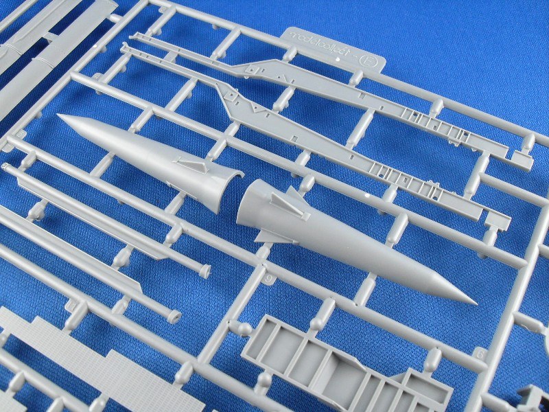 Spritzling A ist doppelt vorhanden. Wie gewohnt ist der Stülpkarton vollgepackt. Mit insgesamt elf Plastikspritzlingen ist der Bausatz nicht für Einsteiger geeignet. Die Teile sind allesamt sauber gespritzt und fein detailliert. Grat findet man nicht. Insgesamt benötigt man 27 Schritte bis zum fertigen Bau. Die ersten 16 Schritte behandeln den Bau der M983 Zugmaschine, die restlichen den Bau des Aufliegers mit Rakete. Interessant ist, dass für die Zugmaschine die Räder aus jeweils vier Teilen bestehen. Ein ähnliches Prinzip kennt man schon von der GTK Boxer-Reihe von Revell. Schön bei diesen Rädern ist, dass sogar an den Reifenhersteller „Michelin“ gedacht wurde. Die Reifen für den Auflieger bestehen aus Gummi und verfügen über ein feines Profil. Weiterhin ist positiv zu erwähnen, dass die Fahrerkabine aus einem Teil besteht und nicht aus einzelnen Seitenteilen zusammengesetzt werden muss. Eine weitere Neuerung ist die Farbangabe für die Bemalung. Diese wurde in Kooperation mit Ammo Mig Jimenez erstellt und entsprechende Farbangaben nach diesem Farbsystem erstellt. Nicht zuletzt wurde auch die Montageanleitung aufgewertet. Diese liegt in farbiger Heftform vor und ist wie gewohnt übersichtlich erstellt.