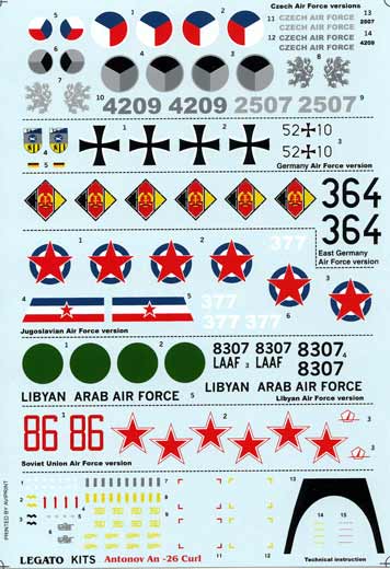 Der dieser AZmodel-Edition der An-26 zu Grunde liegende Bausatz stammt ursprünglich von Amodel. Legato brachte nun diese auf 100 Stück limitierte und gegenüber der Amodel-Edition umfangreicher ausgestattete Ausgabe auf den Markt. Die zusätzliche Ausstattung umfasst eine Ätzteilplatine und einen Instrumentenfilm für eine verfeinerte Detaillierung des Cockpits, eine neue Bauanleitung sowie ein neuer Decalbogen mit sieben interessanten Bemalungs- und Markierungsvarianten.