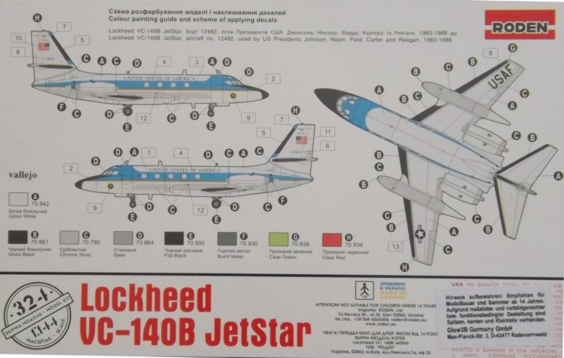 Du bist hier: Home > Kit-Ecke > Roden > Lockheed VC-140B JetStar "USAF One"
