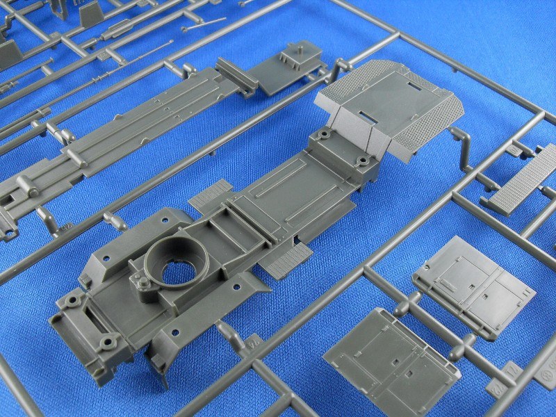 Nachdem Modelcollect mit dem Pershing II Set so manchen Modellbauer positiv überraschte, legt der fernöstliche Modellhersteller nun nach und baut die M983–Serie weiter aus. Diesmal erscheint auf Basis des M983 das Flugabwehrsystem „Patriot 3“. Der Bausatz kommt gewohnt in einem stabilen Stülpkarton daher. Insgesamt besteht der Bausatz aus 15 Plastikspritzlingen, einem Gummischlauch sowie Decalbogen und Anleitung. Bei dem vorliegenden Bausatz handelt es sich um eine Kooperation zwischen Modelcolelct (VR China) und Aoshima (Japan). Von letzterem kommt auch das Patriotsystem samt Auflieger. Die Teile sind allesamt sauber gespritzt und fein detailliert. Grat findet man nicht. Insgesamt benötigt man 32 Schritte bis zum fertigen Bau. Die ersten 18 Schritte behandeln den Bau der M983 Zugmaschine, die restlichen den Bau des Aufliegers mit dem Patriot-Startsystem.