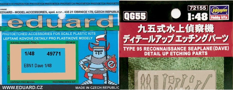 Besprechung:Seit einigen Jahren bietet Hasegawa eigene Foto-Ätzplatinen für einige wenige Bausätze des eigenen Sortiments an. Handelt es sich dabei um Bausätze von Flugzeugen, überschneiden sich diese Angebote in aller Regel mit jenen der Firma Eduard. Vor dem Hintergrund der folgenden Doppelbesprechung kann nun jeder Interessierte im direkten Vergleich entscheiden, welches Produkt er für den Bau der E8N1 bevorzugt.