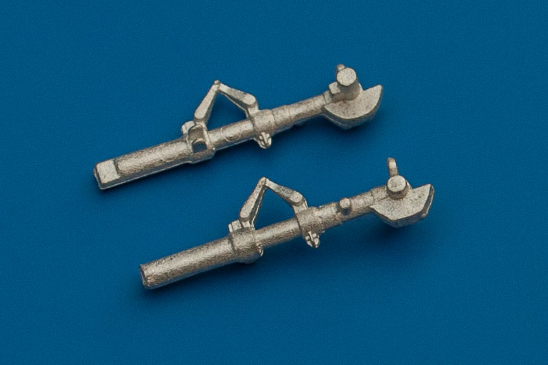 Für den neuen Bausatz von Great Wall Hobby ist nun auch ein Fahrwerksset von Scale Aircraft Conversions erhältlich. Das Set besteht aus 11 Metallteilen und ist im Wensentlichen eine Kopie der entsprechenden Bausatzteile. Der Guss ist bei diesem Set sehr ordentlich, es gibt nur den üblichen Grat zu beseitigen. Ausnahmsweise sind auch alle Teile gerade, was bei SAC ja keine Selbstverständlichkeit ist. Die Detaillierung liegt auf den hohen Niveau der Bausatzteile. Als kleine Zugabe hat man noch ein Buggewicht beigelegt, eine sehr sinnvolle Sache. Der Kerbe nach zu Urteilen soll es wohl direkt auf der Oberseite des Bugradschachtes eingebaut werden.