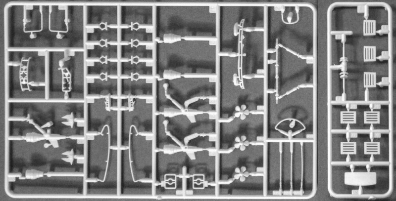 Der lange Rumpf benötigt eine Aussteifung durch zwei beiliegende Spanten. Die Rumpfteile sind doch sehr dünn gespritzt und damit sehr wabbelig. Ansonsten sind die 117 Teile sauber und nahezu gratfrei gespritzt. Die Passgenauigkeit wurde hier noch nicht geprüft.
