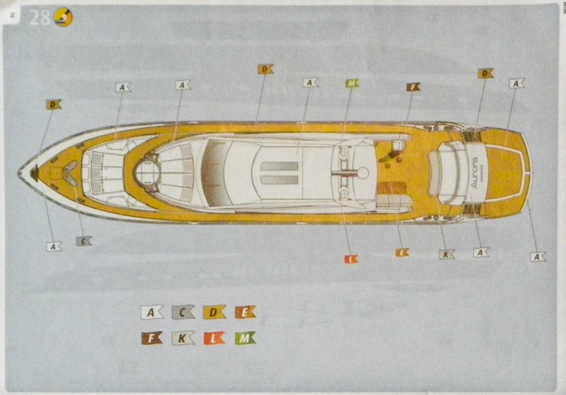 Das Modell zeigt durchaus den Luxus des Originals. Die Couches und die Bar auf dem Achterdeck sind abgebildet, ebenso die Sitz- oder Liegeplätze auf der Back. Von dem detailliert gestalteten Interieur ist nach dem Zusammenbau durch die Rauchglasscheiben leider nicht mehr viel zu sehen. Dennoch macht gerade das Rauchglas etwas her.