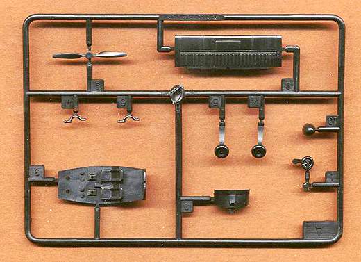 Das ganze Modell besteht aus lediglich 13 Bauteilen. Die Spritzqualität ist sehr gut, auch die Cockpithaube ist schön durchsichtig. Tragflächen und Rumpfunterseite sind ein Bauteil, genau wie die Rumpfoberschale aus nur einem Teil besteht. Dazu kommt ein dreiteiliger Modellständer, der leider ohne Typenangabe ist. Das Cockpit ist etwas einfach aufgebaut und lässt noch Spielraum zur Detaillierung. Bei der ersten Serie sind alle Teile noch aus schwarzem Kunststoff gespritzt. Dies ist für die vorgegebenen Bemalungsvarianten nicht sehr hilfreich. Man ist aber bemüht, dies bei der nächsten Auflage abzustellen. In Anbetracht dessen gibt es dazu in der Bauanleitung einen Hinweis und man schlägt eine Grundierung mit Silber vor. Gänzlich vergessen wurde eine Farb- und Gestaltungsvorlage fürs Cockpit.