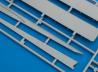 Die Brückensegmente sind jeweils ca. 16cm lang, das Ganze wird also recht imposant, wenn man die Brücke ausgelegt darstellt. Revell zeigt in fünf Schritten, wie die Brücke ausgelegt wird. Duch die teilweise am fertigen Modell beweglichen Teile kann man dies auch im Modell umsetzen. Der Aufbau der Brückenelemente ist recht simpel. Es gibt einige Auswerferpins, die aber alle auf Klebestellen liegen. Die Oberfläche des "Straßenbelages" ist etwas aufgeraut, hier kann man sich gut austoben was Alterung und Abnutzung angeht. Der Heckausleger ist ebenfalls variabel in seiner Position, dazu sind ggf. Korrekturen am Hydraulikzylinder vonnöten. Den Ausleger beweglich zu machen ist schon etwas anspruchsvoller, aber nicht unmöglich! Beim vorderen Ausleger hat uns Revell diesbezüglich schon etwas die Arbeit abgenommen.