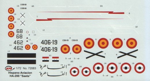 Besprechung:Nach dem Zweiten Weltkrieg konstruierte Willy Messerschmitt in Spanien den Strahltrainer Hispano Aviacion Ha-200 „Saeta“ (Pfeil), der am 12. August 1955 in Sevilla seinen Jungfernflug absolvierte. Außer in Spanien kam die Saeta auch in Ägypten zum Einsatz, wo sie als HA-200B in Lizenz gebaut wurde. In verbesserten Versionen stand das auch als Bodenangriffsflugzeug verwendete Muster bis 1982 im aktiven Dienst.