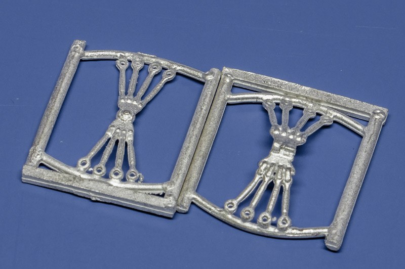 Das zwölfteilige Set ist für den Bausatz von Wingnut Wings vorgesehen. Die Metallteile entsprechen wie üblich exakt den Bausatzteilen. Ersetzt werden die Bauteile A8, A9 und A48 am Fahrgestell sowie die Teile A15, A6 und die Spannschlösser A51 für die Bremse direkt dahinter. Für die Oberseite hat SAC die Verstrebungen für die Abspannung der Flügel beigelegt, sowohl die am Rumpf als auch die Gegenstücke dazu auf den Flügeln (Bausatzteile A38, A39 und die Spannschlösser A10). Die Gussqualität ist gemessen am Material eigentlich ganz gut. Der übliche Grat ist schnell beseitigt, etwas länger dürfte das Heraustrennen der Teile aus den Rahmen und das anschließende Versäubern dauern. Die dünneren Streben müssen noch etwas gerade gerichtet werden.