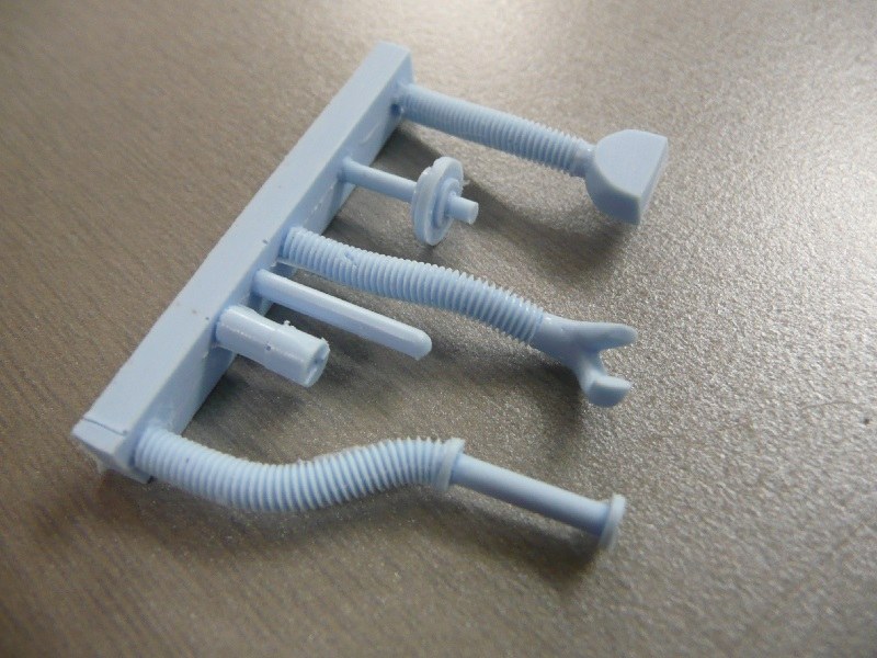 Der Heckrotor-Schutz besteht aus zwei Einzelteilen. Maschinen der SAAF hatten eine Rohr-Verlängerung zum Bug hin montiert, wer eine Alouette III in anderer Konfiguration baut, kann die Verlängerung einfach weglassen. Der Heckrotor besteht aus den drei einzelnen Blättern, dem zentralen Drehteil und einer Steuerpinne. Der zusammengebaute Heckrotor wird am Heckgetriebe auf eine Welle verklebt, bleibt somit nicht drehbar. Der Hauptrotorkopf samt Taumelscheibe besteht aus sechs Einzelteilen, die Steuerstangen und Spannseile zwischen den Blättern müssen in Eigenregie hergestellt werden. Am Hauptrotorkopf werden die Rotorblätter montiert. Diese sind innen mit Draht verstärkt, die Blattarme sind bereits am Rotorblatt angegossen. Die Detaillierung ist auch in diesem Bereich sehr gut gelungen.
